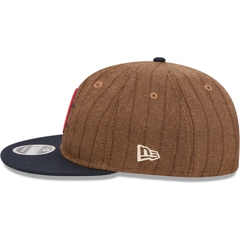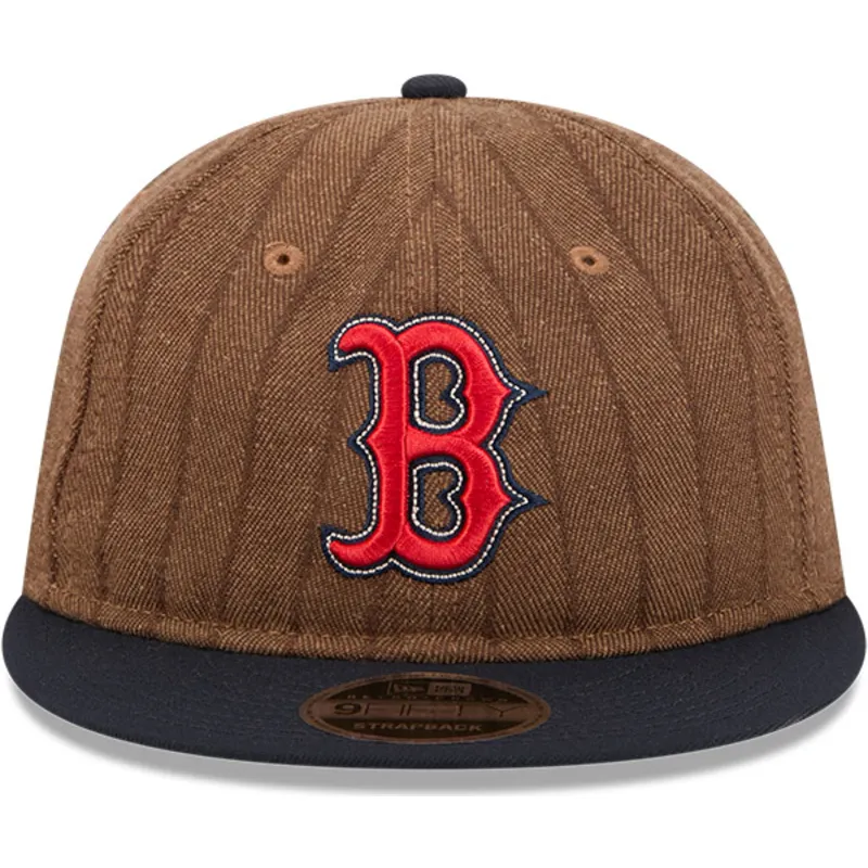 New Era Flat Brim 9FIFTY Retro Crown Wool Pinstripe Boston Red Sox MLB Brown and Navy Blue Adjustable Cap